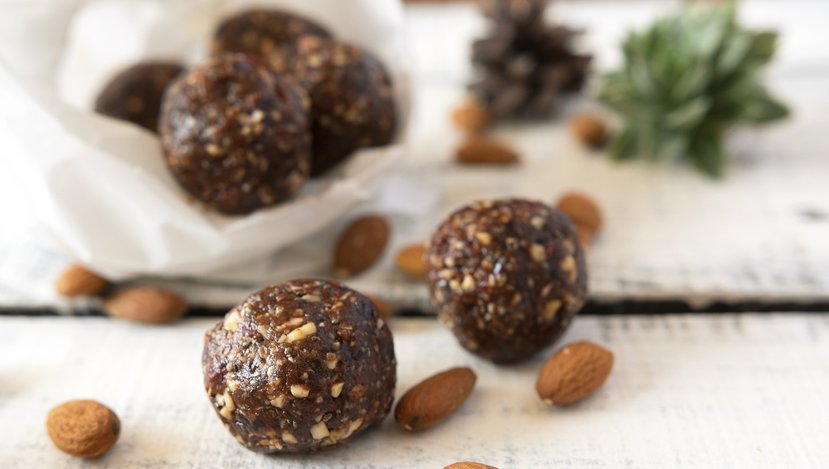 Malzemeleri birleştir: Badem unu, hurma püresi, kakao ve hindistan cevizi yağını bir kapta karıştırın. Hamur kıvamına gelene kadar yoğurun.