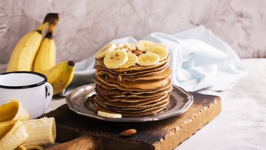Muzu bir kasede iyice ezin. Üzerine yumurtaları ekleyip karıştırın. Yulaf ezmesi, tarçın ve kabartma tozunu ekleyerek pürüzsüz bir karışım elde edin. Yapışmaz tavayı çok az yağlayın ve karışımdan küçük pankekler dökün. Orta ateşte iki tarafı da altın rengi olana kadar pişirin.