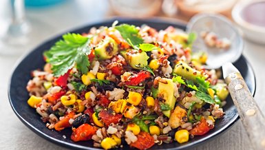 Soğuyan kinoayı, doğranmış sebzeler, mısır ve nar ekşisi ile bir kasede karıştırın.